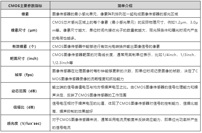 圖表15. CMOS圖像傳感器核心技術(shù)指標