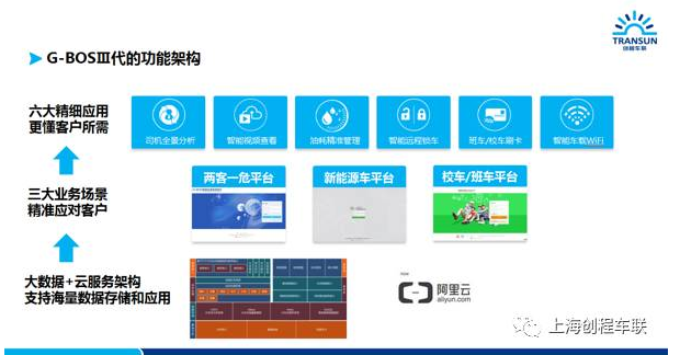 Ⅲ代主推的六大精細應(yīng)用,更懂用戶所需,有司機行為全景分析、智能視頻查看、油耗精準管理、智能遠程鎖車、班車及校車刷卡、智能車載WiFi等 。
