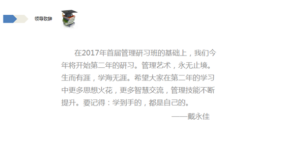 戴總對2018年的研習(xí)班發(fā)來了祝賀詞: