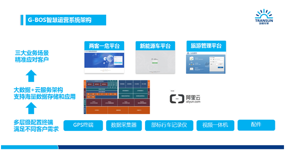2010年第一代G-BOS智慧運營系統(tǒng)誕生,如今已發(fā)展至G-BOS三代。G-BOS三代智慧運營系統(tǒng)的功能更加全面,更加懂得用戶所需,新增六大精細應用:司機行為全景分析、智能視頻查看、油耗精準管理、智能遠程鎖車、班車及校車刷卡、智能車載WiFi,并且三代基于云平臺部署,其功能有計算服務:提供高性能、安全穩(wěn)定的彈性計算服務;存儲服務:多級數(shù)據(jù)存儲解決方案,保障數(shù)據(jù)存儲安全無憂;網(wǎng)絡服務:提供跨運營商、跨地域全網(wǎng)覆蓋的高可用網(wǎng)絡服務;安全服務:有效防御網(wǎng)絡攻擊,幫助客戶降低安全風險,為客戶的數(shù)據(jù)保駕護航。目前,G-BOS智慧運營系統(tǒng)在全國的裝車量已經(jīng)超過13萬輛,服務客戶超過2000家。