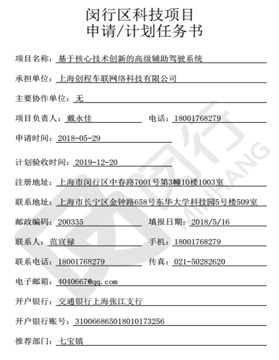 2018年9月6日,我司“基于核心技術(shù)創(chuàng)新的高級輔助駕駛系統(tǒng)”經(jīng)過上海市閔行區(qū)科委專家評審,獲得專家的一致好評,已于9月6日通過項(xiàng)目立項(xiàng),項(xiàng)目立項(xiàng)后將獲得閔行科委資助資金30萬元。