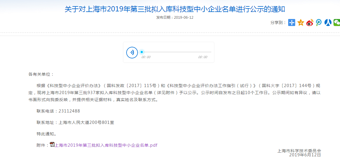 2019年6月26日,我司已過公示期正式入庫上海市科技型中小企業(yè)名單。根據(jù)科技部、財(cái)政部、國家稅務(wù)總局《科技型中小企業(yè)評(píng)價(jià)辦法》(國科發(fā)政〔2017〕115號(hào))、科技部火炬中心《科技型中小企業(yè)評(píng)價(jià)辦法工作指引(試行)》(國科火字〔2017〕144號(hào))要求,經(jīng)區(qū)評(píng)價(jià)機(jī)構(gòu)審核及市科委的批準(zhǔn),我司成功入庫上海市2019年第三批科技型中小企業(yè)名單。