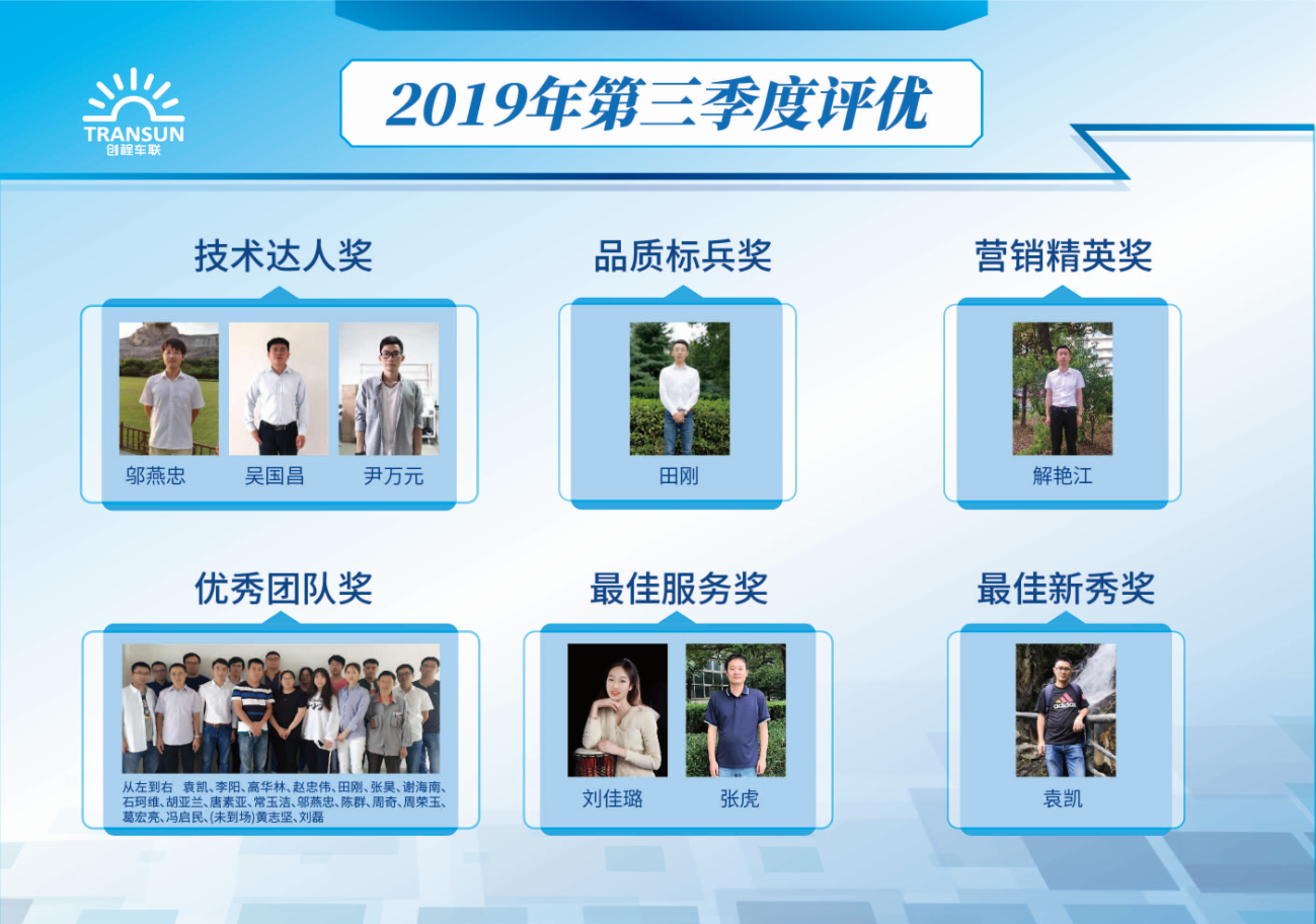 優(yōu)秀團(tuán)隊(duì)蘇公交項(xiàng)目團(tuán)隊(duì),技術(shù)達(dá)人鄔燕忠、吳國昌、尹萬元,最佳服務(wù)劉佳璐,張虎,品質(zhì)標(biāo)兵田剛,最佳新秀袁凱,營銷精英解艷江,他們在這一季度中團(tuán)結(jié)協(xié)作、積極創(chuàng)新、勤勤懇懇,為公司發(fā)展做出貢獻(xiàn),下面讓我們一睹他們的風(fēng)采。