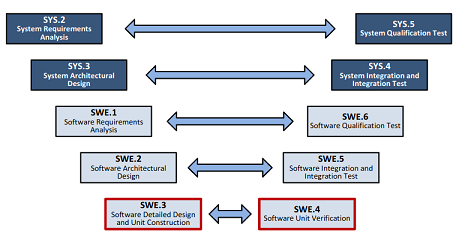 ASPICE 建立在 V 模型之上,它需要與每個(gè)開發(fā)階段相對應(yīng)的測試階段。 這是一個(gè)嚴(yán)格的模型,需要嚴(yán)格的評估以確保持續(xù)的評估和發(fā)展。下圖是ASPICE中定義的典型開發(fā)流程: